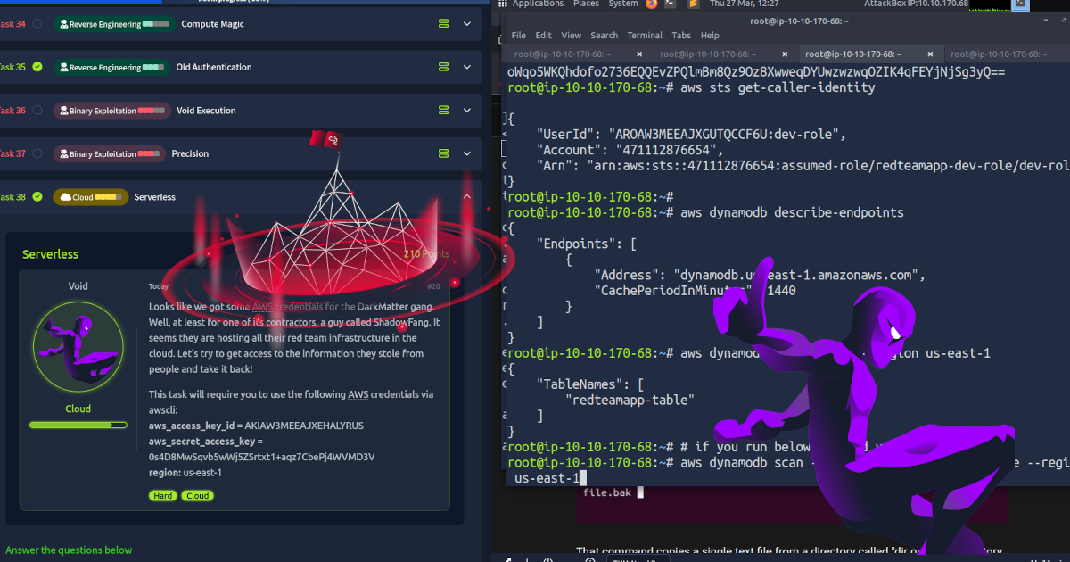 Armed with the ShadowFang credentials, I navigated S3 buckets, exploited Lambda functions, and escalated privileges to uncover three flags hidden in the DarkMatter gang’s infrastructure. Here’s how I cracked it, step by step.