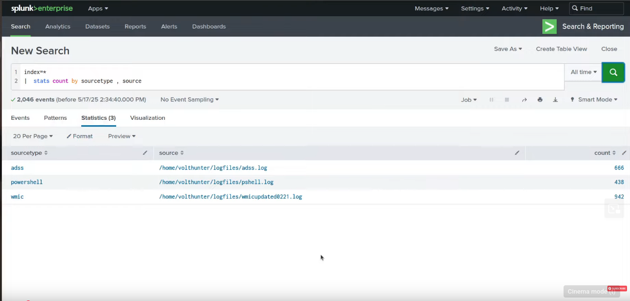 index=* | stats count by sourcetype, source